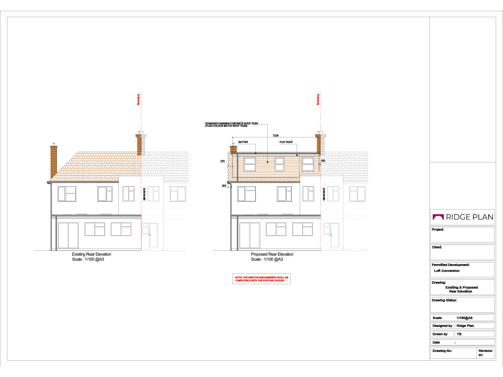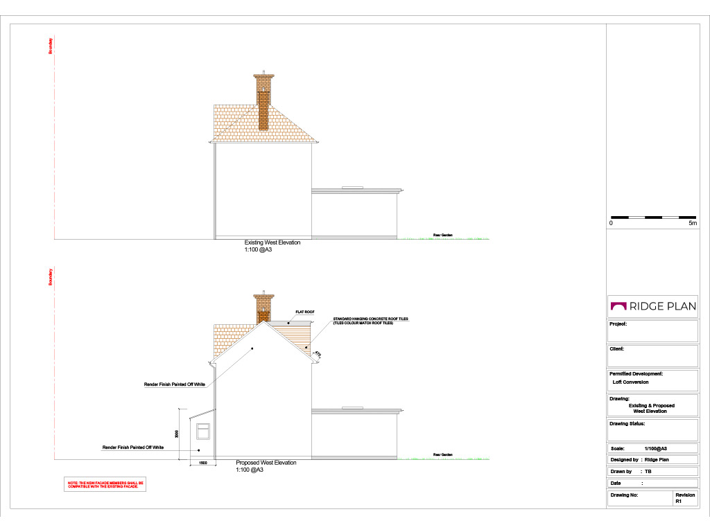 • Existing and proposed elevations