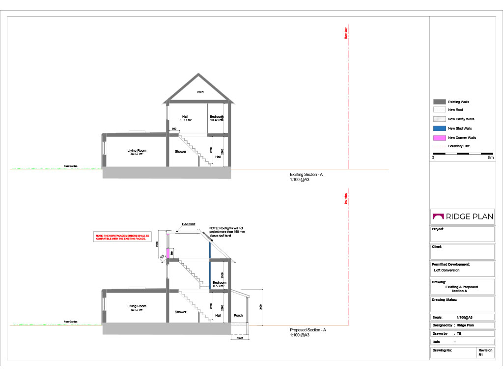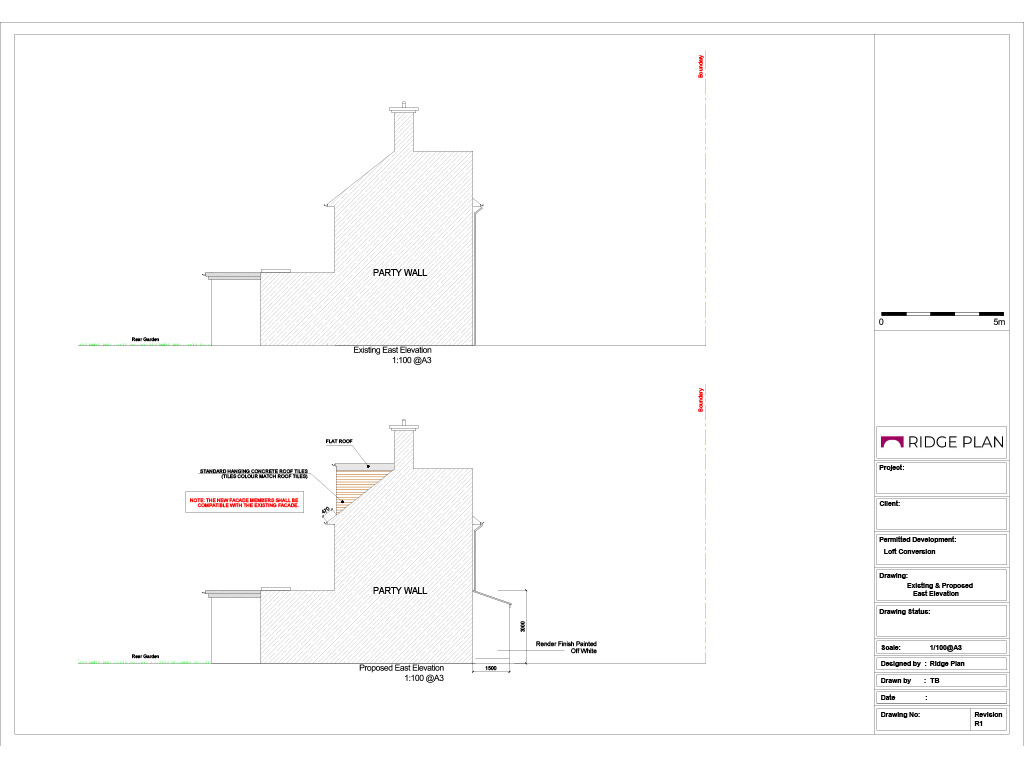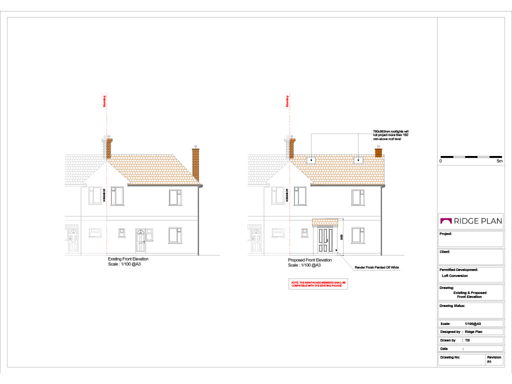 • Existing and proposed elevations
