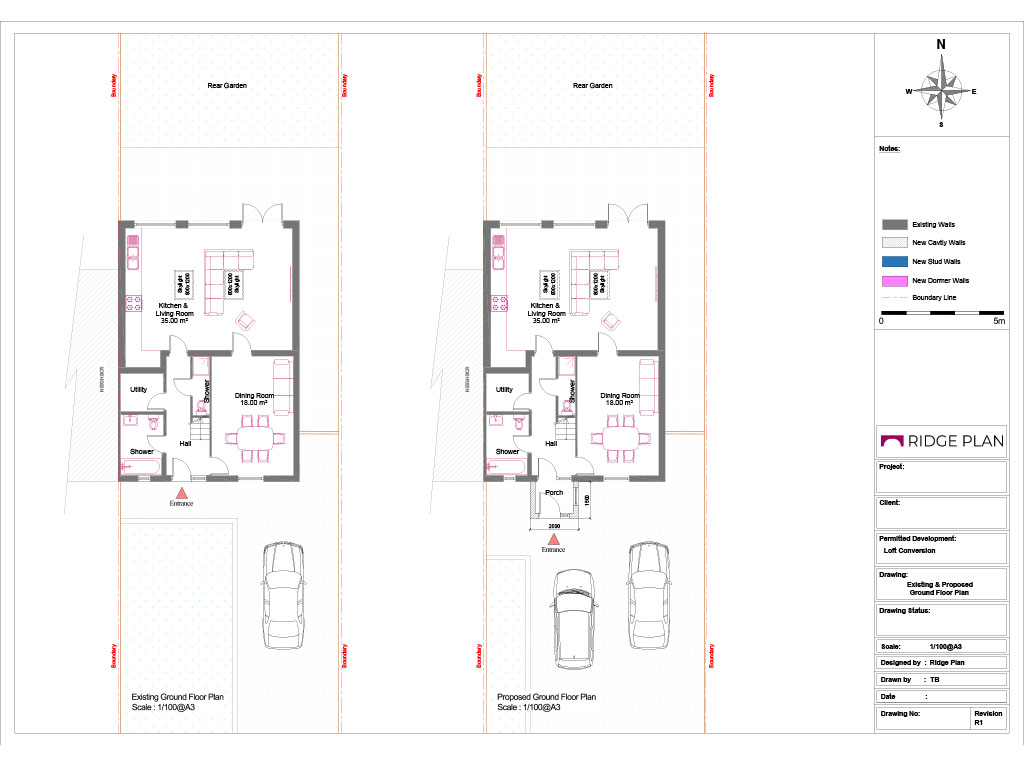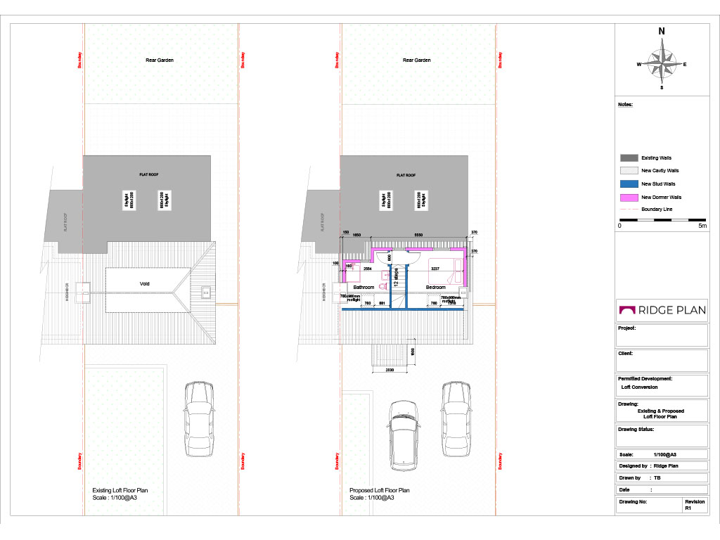 • Existing and proposed floor plans